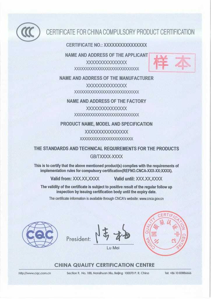 Các mặt hàng sau khi xuất khẩu vào Trung Quốc đều phải có chứng nhận CCC. Danh sách mặt hàng bao gồm: thiết bị điện gia dụng, động cơ, dây và cáp, công tắc, thiết bị âm thanh và video, dụng cụ điện, thiết bị viễn thông, thiết bị chiếu sáng, thiết bị đọc thẻ, linh kiện ô tô và xe, thiết bị bảo vệ và thiết bị y tế.
