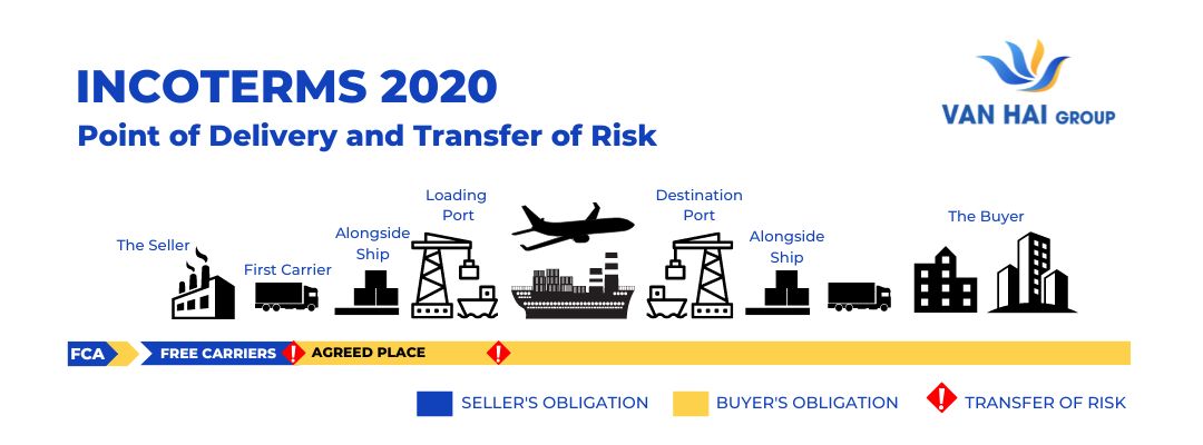 FCA là gì trong logistics? Trong bài viết này Vạn Hải sẽ cung cấp cho bạn thông tin về điều kiện FCA Incoterms. Bao gồm các phần làm rõ định nghĩa FCA là gì? Nội dung điều kiện FCA Incoterms 2020? Trách nhiệm và nghĩa vụ của người bán người mua trong hợp đồng ngoại thương theo điều kiện FCA. Cùng tìm hiểu ngay nhé!