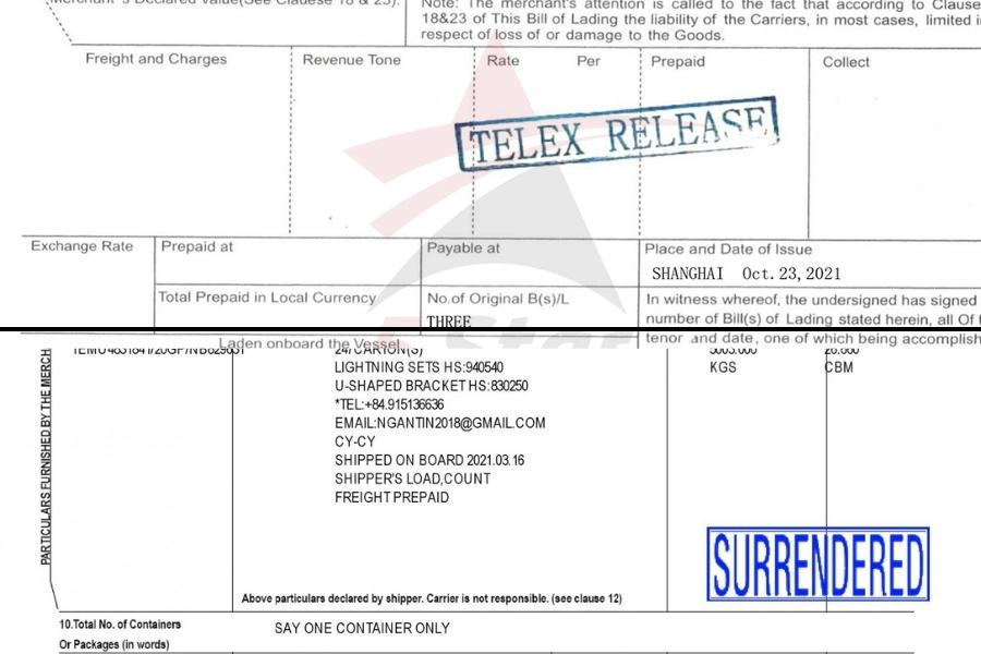 Một số dòng cho phép phát hành telex dựa vào thỏa thuận hoặc lệnh vận đơn. Nó căn cứ vào các vận đơn gốc đã được xác minh ở vận đơn.
